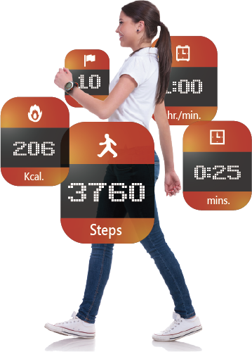 CU!動次錶透過內建的3D數位加速器, 可以偵測你在走路、跑步等運動中所產生的步數。